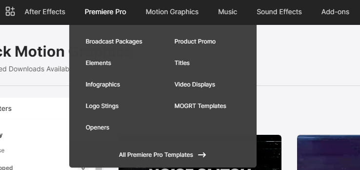 - Premiere Pro - включает шаблоны Premiere pro и шаблоны MOGRT.