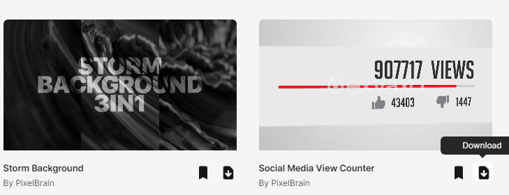 В настоящее время доступно 4700+ активов. Их репозиторий включает в себя видео шаблоны, стоковое видео и стоковое аудио: