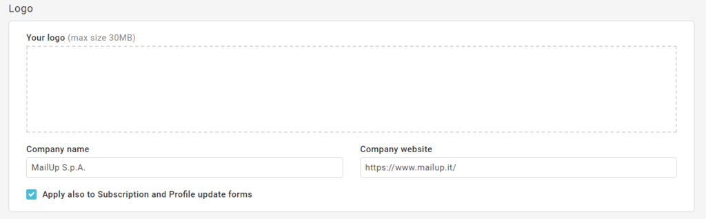 Предупреждение: после загрузки вашего логотипа не забудьте установить флажок Применить также к формам обновления подписки и профиля , как показано на изображении ниже.