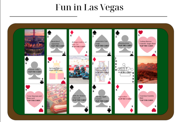 Участники могут участвовать в общественных проектах, где они получают возможность продемонстрировать свои творческие навыки, увлечения и области знаний. Они также могут участвовать в испытаниях и создавать для других членов сообщества. Один из участников создал эту интерактивную графику, вдохновленную игральными картами, созданную для задачи визуализации Tableau #B2VB. Нажмите на карточку, чтобы узнать о доступном занятии, которое можно попробовать во время поездки в Лас-Вегас.