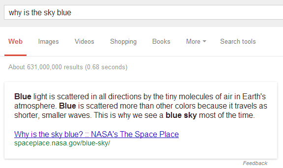 в 2014 году Google начал отвечать на сложные вопросы в верхней части результатов поиска с подробными ответами (или ответами), взятыми с веб-сайтов.