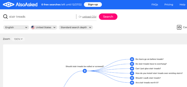 Также Asked использует запросы Google «Люди также задают вопросы» и исследует отношения по различным темам. В значительной степени ориентированные на намерения искателя, результаты могут помочь маркетологам структурировать свой контент и внутренние ссылки.