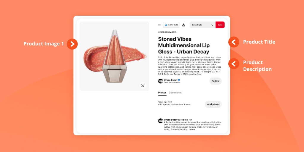 Включите релевантные ключевые слова для вашего продукта в начале описания вашего пина — не сохраняйте их до конца!