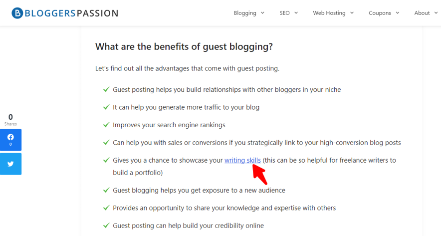 В приведенном выше примере кто-то уже читает сообщение в блоге о преимуществах гостевого блоггинга. Если они нажмут на якорный текст «навыки письма», имеет смысл направить их на соответствующую публикацию в блоге о проверенных способах улучшения своих навыков письма.