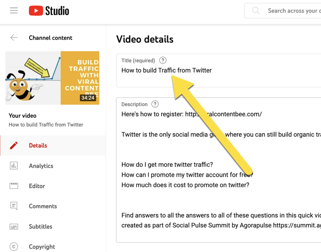 Название вашего видео должно вызывать клик, поэтому убедитесь, что оно достаточно интересно, чтобы его можно было вызвать.