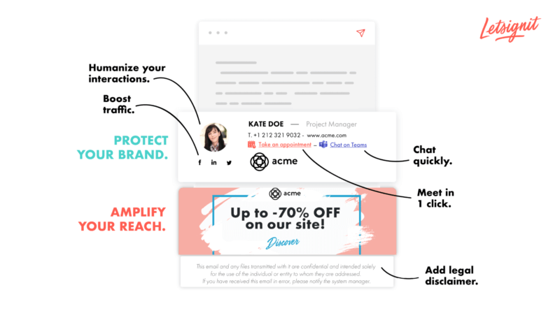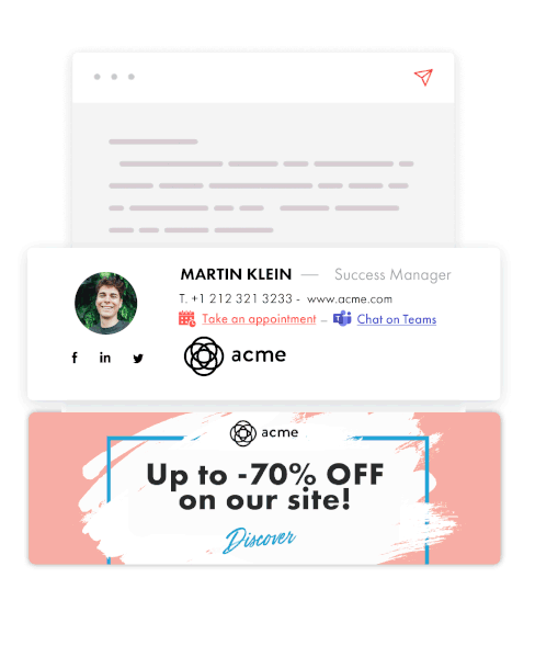 ใช้ประโยชน์จากโซลูชันลายเซ็นอีเมลแบบมืออาชีพเพื่อรับข้อความสร้างแบรนด์และการตลาดต่อหน้ากลุ่มเป้าหมายที่อนุญาตให้คุณส่งข้อความถึงพวกเขา