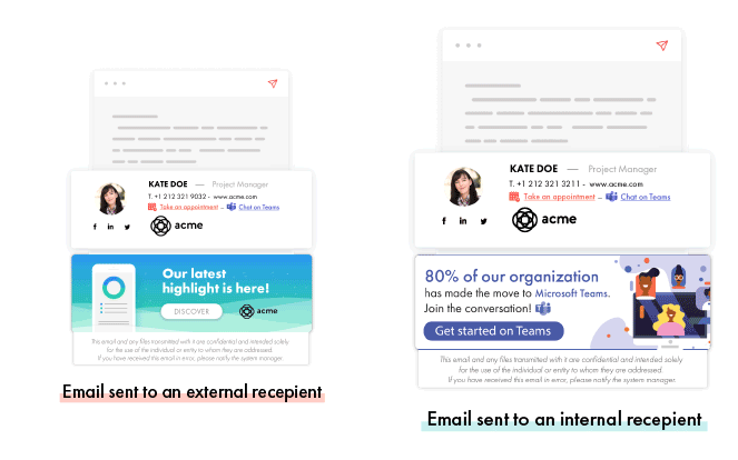 ด้วยความช่วยเหลือของลายเซ็นอีเมลแบบมืออาชีพ คุณสามารถส่งข้อความอีเมลแบบตัวต่อตัวที่กำหนดเป้าหมายไปยังพนักงานและลูกค้าได้มากขึ้น