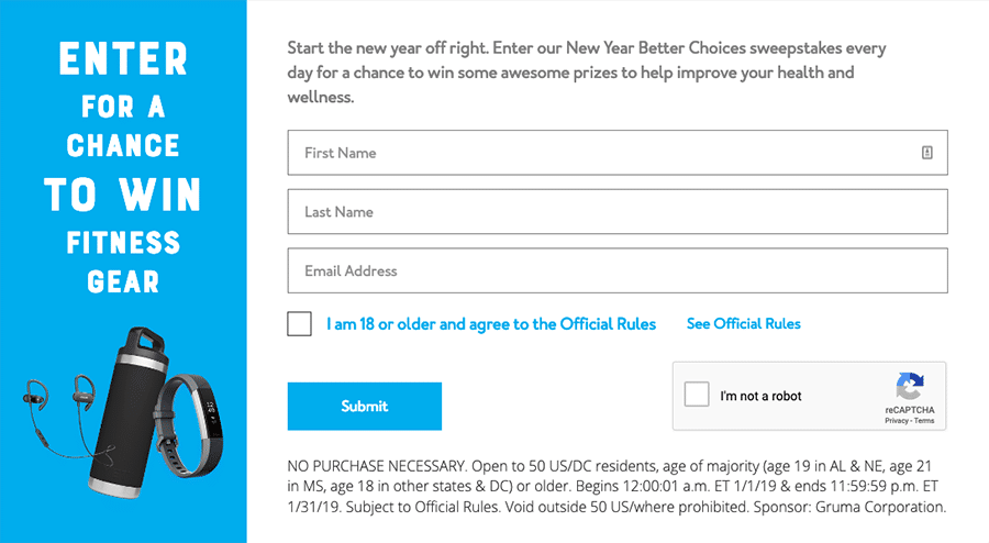 Mission Foods เป็นผู้จัดส่งผลิตภัณฑ์เม็กซิกันแท้ๆ ในช่วงเดือนมกราคม 2019 พวกเขาได้สนับสนุนแคมเปญที่มุ่งช่วยเหลือผู้คนให้บรรลุเป้าหมายการออกกำลังกายในปีใหม่ สำหรับแคมเปญ พวกเขาแจกอุปกรณ์ออกกำลังกาย โดยเฉพาะสายรัดข้อมือติดตามฟิตเนส 11 เส้น หูฟังไร้สาย 10 คู่ และขวดน้ำหุ้มฉนวน 10 ขวด ในการป้อน ผู้ใช้เพียงแค่กรอกแบบฟอร์มพร้อมชื่อและที่อยู่อีเมล ตลอดหนึ่งเดือนของการแข่งขัน พวกเขาได้รับ 109,246 ผลงานและ 369,773 วิว จากเกือบ 370,000 การดู 42% (155,609) เป็นมุมมองที่ไม่เหมือนใคร นั่นเป็นจำนวนมากสำหรับเจ้าชู้!
