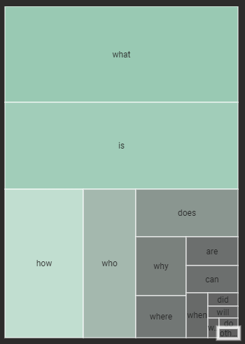 เมื่อพูดถึงคำถามและความสนุกเล็กน้อย ผู้นำกลุ่ม Ws ทั้งห้า "อะไร" คือผู้ชนะที่ใกล้ชิดโดยมีตัวแทนในเกือบ 29% ของ PAA ทั้งหมดที่รวบรวมได้ “คือ” ลูกรักมาในวินาทีที่ใกล้ ตามด้วย “อย่างไร” และ “ใคร”