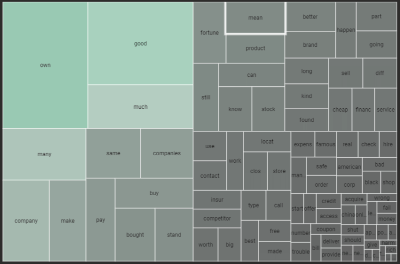 กลุ่มที่เศร้าที่สุดคือกลุ่ม "going" และ "clos" ("clos" ใช้แทนคำเช่น "close", "closed" และ "closed") ซึ่งดูเหมือนจะตอบคำถามที่เกิดจากการระบาดใหญ่เกี่ยวกับการละลาย ของบริษัทดัง
