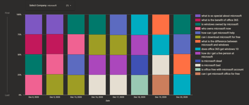 เราสามารถเปรียบเทียบสิ่งนั้นกับ Microsoft ซึ่งเป็นหนึ่งใน PAA ที่มีความหลากหลายมากที่สุดของเรา โดยมีการเปลี่ยนแปลงเกือบทุกวันในการแสดง PAA แบบผสมกัน