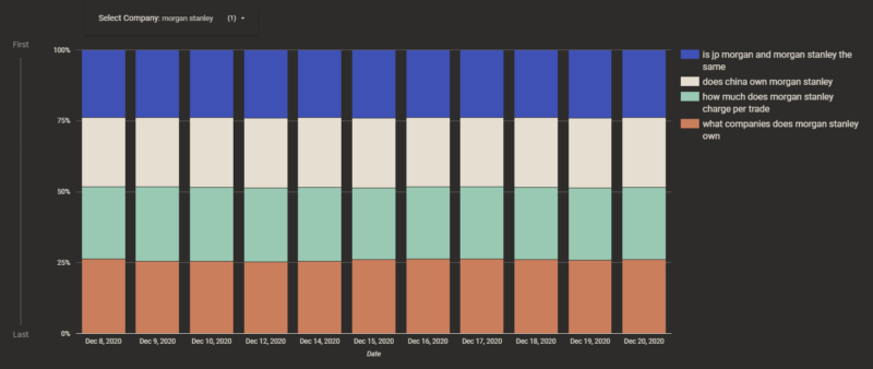 บริษัท PAA มีการเปลี่ยนแปลงตลอดเวลา ในมุมมองนี้ เราจะพิจารณาว่าผลลัพธ์ของ PAA เปลี่ยนแปลงไปในแต่ละวันอย่างไร ชุดข้อมูลนี้เริ่มรวบรวมข้อมูลเมื่อวันที่ 8 ธันวาคม 2020 ดังนั้นแผนภูมินี้จะมีความน่าสนใจมากขึ้นเมื่อเราก้าวเข้าสู่ปี 2021 นี่คือบริษัทโปรดสองสามบริษัทที่ฉันชื่นชอบ