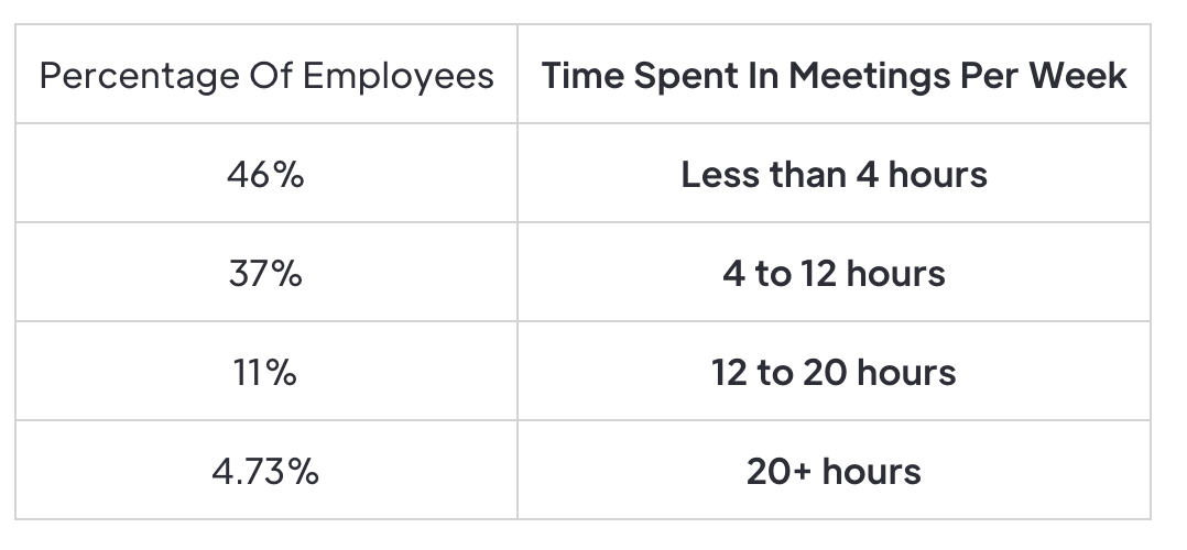 เราจะไม่เจาะลึกจุดข้อมูลทั้งหมดในโพสต์นี้ แต่คุณสามารถดูข้อสังเกตที่ถูกต้องเกี่ยวกับวิธีที่การประชุมทำให้คุณเสียเวลาได้ที่นี่: