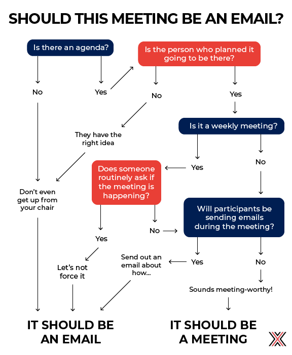 ดูผังงานที่มีประโยชน์นี้เพื่อช่วยแนะนำคุณในกระบวนการตัดสินใจว่าการประชุมครั้งถัดไปของคุณควรจะจัดขึ้นหรือไม่: