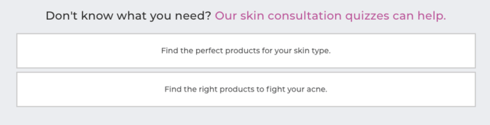เมื่อคุณเยี่ยมชมเว็บไซต์ Platinum Skin Care คุณสามารถทำแบบทดสอบที่ช่วยให้คุณค้นหาผลิตภัณฑ์ที่เหมาะกับสภาพผิวและความต้องการเฉพาะของคุณได้