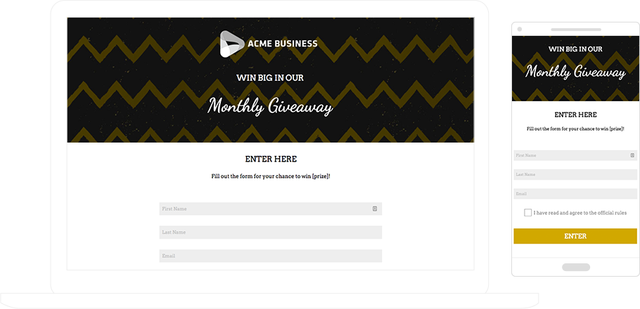 โดยทั่วไปการเสนอรางวัลจะทำให้คุณได้รับแบบฟอร์มมากที่สุด และการแจกของรางวัลเป็นวิธีที่เหมาะในการเพิ่มการรับรู้เกี่ยวกับผลิตภัณฑ์และบริการของคุณ มีของแจกหลายประเภทที่คุณสามารถเรียกใช้เพื่อให้โปรโมชั่นของคุณสดใหม่ — ตั้งแต่การแจกของรางวัลที่เข้าร่วมมาตรฐาน ไปจนถึงการแจกของรางวัลที่ไม่เหมือนใคร เช่น โหวตเพื่อเข้าร่วม เดาคะแนนสำหรับการแข่งขันกีฬา เลือกรางวัลของคุณ และแจกของรางวัลหลายวัน