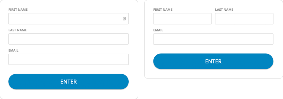 - ฟิลด์แบบฟอร์มควรมีการจัดตำแหน่งซ้ายบน ทำให้ผู้ใช้มองเห็นได้ง่ายขึ้นจากขั้นตอนหนึ่งไปอีกขั้น