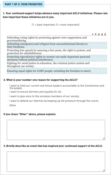 เคล็ดลับที่ไม่แสวงหากำไรอย่างหนึ่งที่ไม่ค่อยมีใครรู้จักคือการสำรวจผู้บริจาคของคุณ โดยเฉพาะอย่างยิ่ง การสำรวจผู้บริจาคที่เสียชีวิตของคุณหรือผู้ที่ไม่ได้บริจาคมาระยะหนึ่งจะช่วยให้พวกเขามีโอกาสได้แสดงความคิดเห็น นอกจากนี้ยังเตือนพวกเขาว่าองค์กรของคุณยังคงลงทุนในพวกเขาในฐานะบุคคล