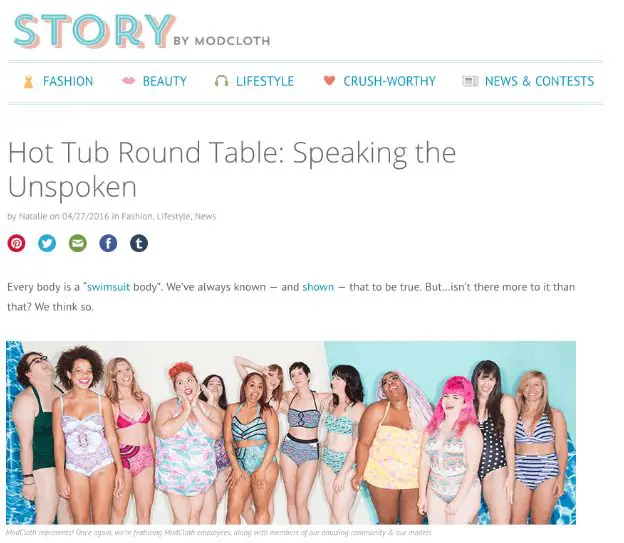 การปรากฏตัวของอีคอมเมิร์ซที่ทำให้การโต้เถียงได้ผลจริงสำหรับพวกเขาคือ ModCloth ที่เกี่ยวกับเสื้อผ้าผู้หญิง นี่คือบริษัทที่ไม่อายที่จะทำสิ่งต่าง ๆ ที่ทำให้ผู้คนขุ่นเคือง ตั้งแต่แบรนด์ผู้หญิงที่มีชื่อเสียงแบรนด์แรกๆ ที่มีนางแบบข้ามเพศ ไปจนถึงการประกาศจุดยืนต่อต้าน Photoshop ไปจนถึงการประกาศว่าร่างกายทุกคนเป็น “ ร่างกายของชุดว่ายน้ำ”. สิ่งเหล่านี้สามารถและทำให้ผู้มีโอกาสเป็นลูกค้าแปลกแยกออกไปได้ แต่พวกเขายังสร้างผู้เผยแพร่แบรนด์ที่ทุ่มเท กระตุ้นการสนทนาที่มีส่วนร่วม และดึงดูดลิงก์จำนวนมาก