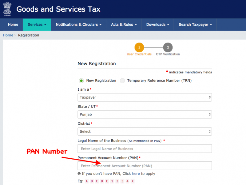 คุณสามารถลงทะเบียน GST ได้ที่ URL – https://reg.gst.gov.in/registration/