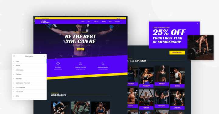 คุณเป็นนักเพาะกายหรือเป็น Crossfit มากกว่านั้นหรือไม่? ในหน้านี้ คุณจะพบกับเลย์เอาต์ที่สวยงามสำหรับชั้นเรียน รายการ หรือแม้แต่โพสต์ ภาพหมุนรับรองที่ด้านล่างทำหน้าที่เป็นข้อพิสูจน์ทางสังคมสำหรับประสิทธิภาพของยิมของเรา