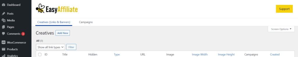 ในปลั๊กอิน Easy Affiliate คุณสามารถไปที่ โฆษณา > โฆษณา (ลิงก์และแบนเนอร์) > เพิ่มใหม่ เพื่ออัปโหลดเนื้อหาภาพของคุณ: