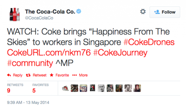 Coca-Cola กำลังคิดเรื่องสังคมอยู่แล้ว สังเกตแฮชแท็กในประโยคทีเซอร์? บริษัท วางแผนที่จะใช้ #Cokedrones ในโพสต์โซเชียลมีเดีย สิ่งที่คุณวางแผนที่จะโปรโมตข้ามช่อง ให้คิดล่วงหน้า คุณสามารถใช้แฮชแท็กอะไรได้บ้าง