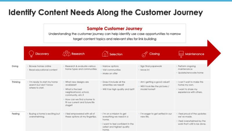 การทำแผนที่เส้นทางที่ลูกค้ามักจะผ่านสามารถช่วยคุณสร้างบุคลิกของผู้ชมในขณะที่ระบุโอกาสในการตอบคำถามทั่วไปในแต่ละขั้นตอนของการเดินทาง