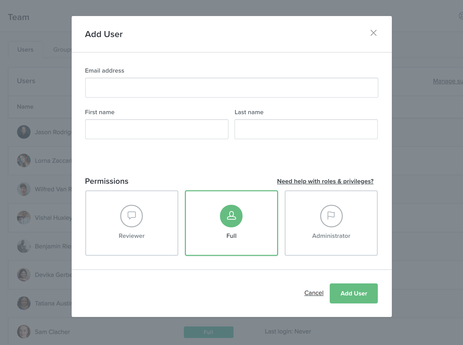 หลายบริษัทใช้บทบาทผู้ใช้เต็มรูปแบบสำหรับสมาชิกในทีมส่วนใหญ่ นักการตลาด นักออกแบบ นักพัฒนา และเจ้าหน้าที่ QA ทุกคนต้องการเข้าถึงคุณลักษณะของ Litmus บทบาทผู้ใช้แบบเต็มช่วยให้พวกเขาเริ่มการทดสอบใหม่ โปรเจ็กต์ตัวสร้าง การพิสูจน์ และรายงานการวิเคราะห์อีเมลได้อย่างรวดเร็ว