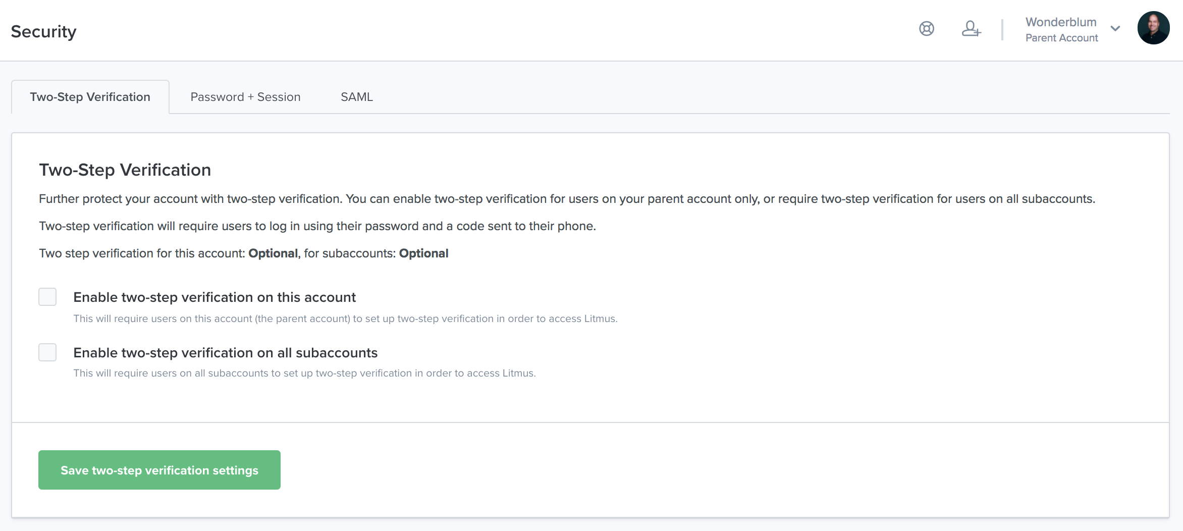สิ่งนี้เป็นจริงโดยเฉพาะอย่างยิ่งสำหรับองค์กรระดับองค์กร ซึ่งโดยทั่วไปแล้วจะมีบุคคล ทีม แผนก และลูกค้าหลายคนที่เกี่ยวข้องในระดับต่างๆ กัน ในกระบวนการผลิตอีเมล นอกจากนี้ องค์กรเหล่านี้อาจมีข้อกำหนดเฉพาะสำหรับทั้งบริษัทสำหรับการจัดการการตั้งค่าการเข้าถึงของทีมและความปลอดภัย โชคดีที่ Litmus ช่วยให้ตั้งค่าการอนุญาต กลุ่ม และบัญชีย่อยต่างๆ ของผู้ใช้ได้ง่าย รวมถึงการรักษาความปลอดภัยบัญชีของคุณโดยใช้โปรโตคอลการตรวจสอบยืนยันล่าสุดและการลงชื่อเพียงครั้งเดียว