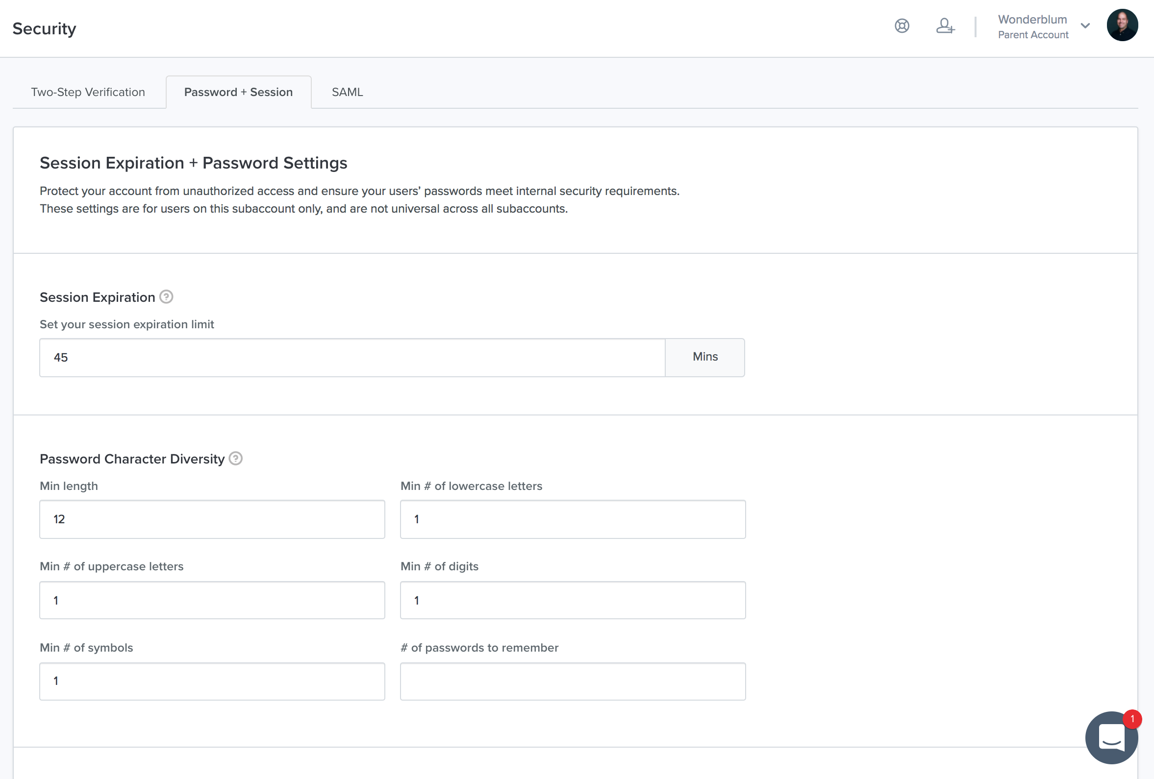 การจำกัดรหัสผ่านและเซสชันช่วยเพิ่มความปลอดภัยให้กับผู้ใช้ของคุณ คุณสามารถตั้งเวลาหมดอายุของเซสชันได้ ซึ่งจะบังคับให้ผู้ใช้กลับเข้าสู่ระบบอีกครั้งหลังจากเวลาที่กำหนด ตลอดจนกฎสำหรับกำหนดระดับความปลอดภัยของรหัสผ่าน ความแข็งแกร่งของรหัสผ่านสามารถบังคับใช้ด้วยความยาวขั้นต่ำและการตั้งค่าอักขระ และคุณยังสามารถขึ้นบัญชีดำคำนำหน้าหรือวลีภายในรหัสผ่าน ป้องกันไม่ให้ผู้ใช้ตั้งค่าการเข้าสู่ระบบ “password123” ที่น่ากลัว รหัสผ่านยังสามารถตั้งค่าให้หมดอายุหลังจากผ่านไประยะหนึ่ง โดยกำหนดให้ผู้ใช้อัปเดตรหัสผ่านเป็นระยะ โดยธรรมชาติแล้ว คุณสามารถจำกัดการใช้รหัสผ่านซ้ำได้เช่นกัน