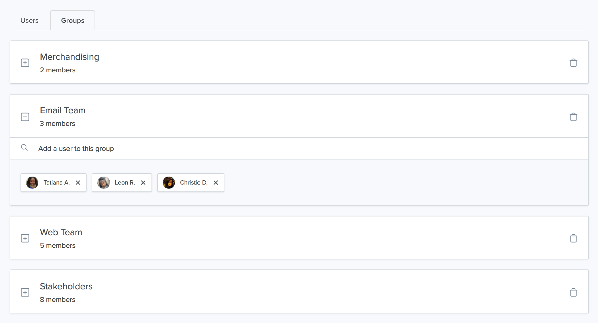 กลุ่มเป็นวิธีที่ยอดเยี่ยมในการเร่งความเร็วในการผลิตอีเมลและกระบวนการตรวจสอบ และเมื่อรวมกับบทบาทของผู้ใช้แล้ว จะช่วยให้คุณจัดการการควบคุมทีมภายใน Litmus for Enterprise ได้อย่างง่ายดาย