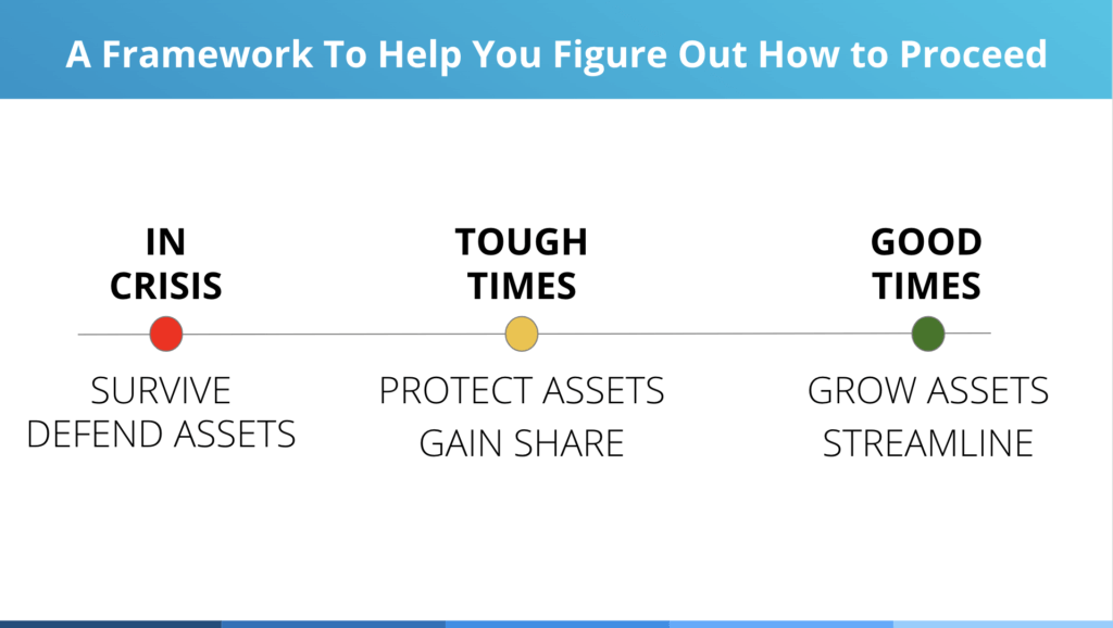ขั้นตอนแรก? ประเมินตำแหน่งที่คุณอยู่ตอนนี้กับธุรกิจของคุณ: ในภาวะวิกฤต ช่วงเวลาที่ยากลำบาก หรือช่วงเวลาที่ดี