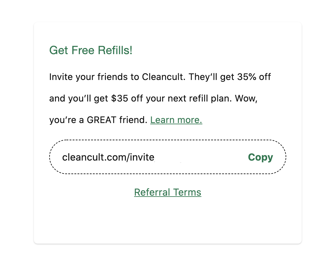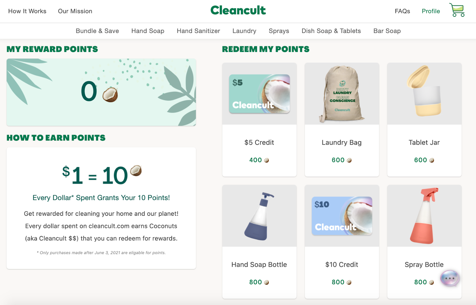 อีกทางหนึ่ง คุณสามารถ gamify โปรแกรมรางวัลของคุณ เพื่อให้ลูกค้าของคุณรู้ว่าพวกเขากำลังทำอะไรอยู่ ดังที่ Cleancult ทำในตัวอย่างด้านล่างนี้!