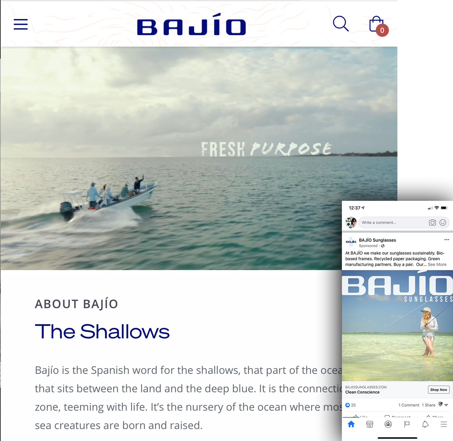 แว่นกันแดด Bajio ได้สร้างแบรนด์ขึ้นจากผลิตภัณฑ์ที่เป็นมิตรกับสิ่งแวดล้อม และคุณจะพบข้อความเดียวกันนี้ในเว็บไซต์ โพสต์และโฆษณาในโซเชียลมีเดีย และในอีเมล