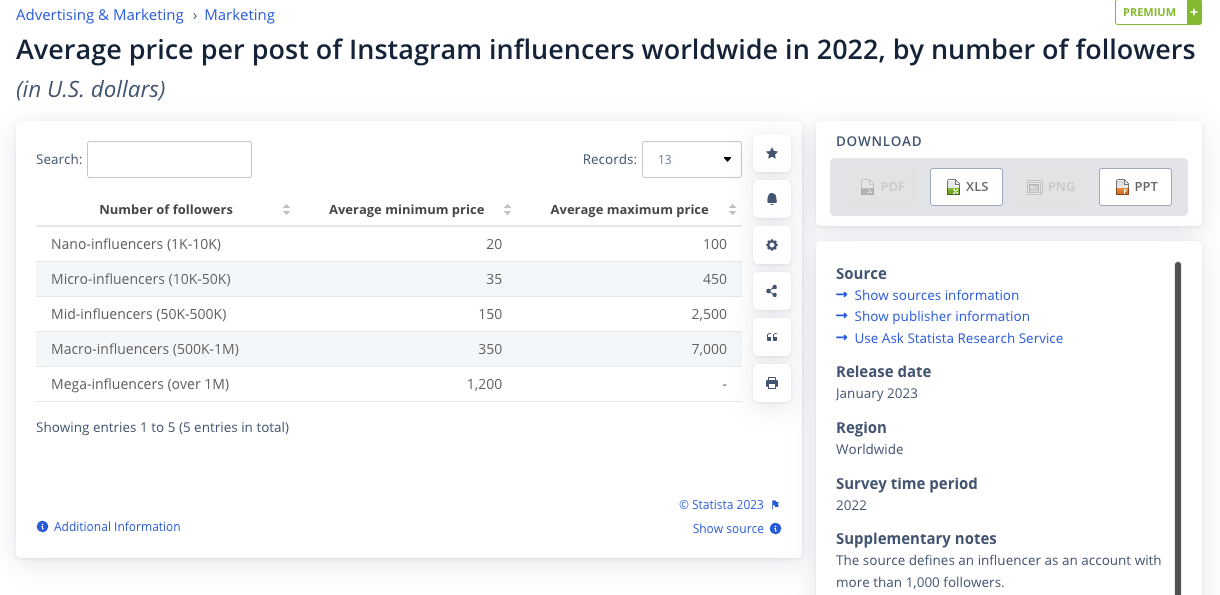 - สถิติการตลาดของผู้มีอิทธิพลสำหรับ Instagram
