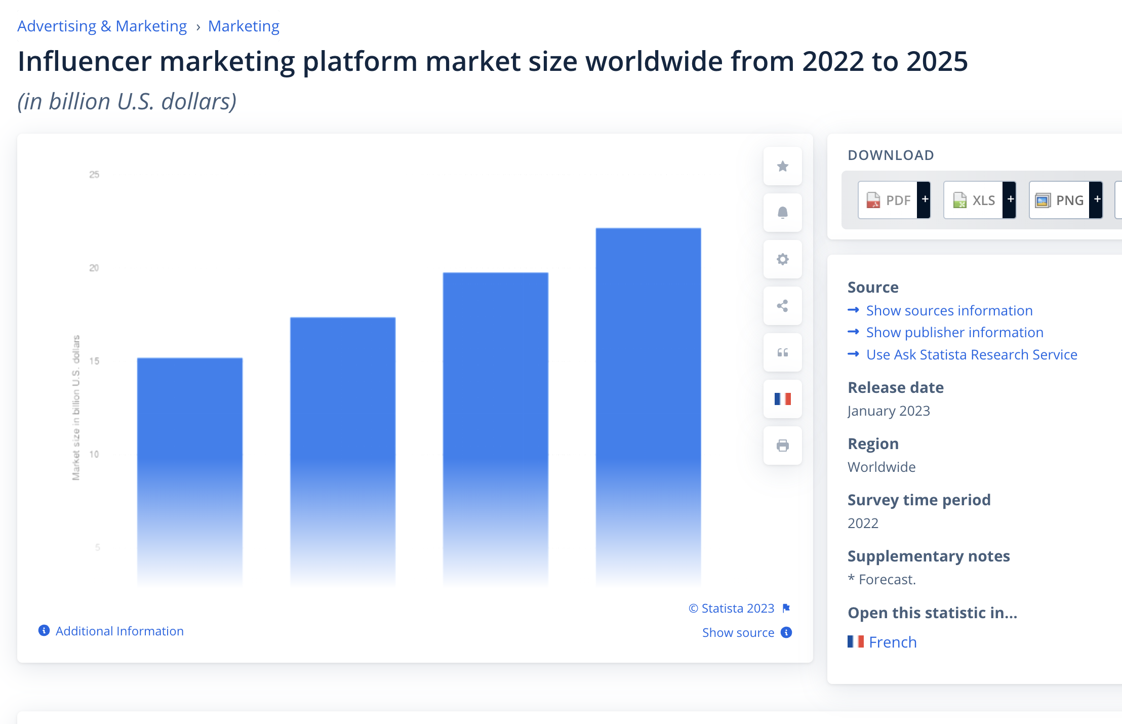 นอกจากนี้ แพลตฟอร์มการตลาดของ Influencer ยังปรากฏขึ้นเป็นประจำเพื่อช่วยในงานต่างๆ ที่เกี่ยวข้อง: ค้นหา Influencer ร่วมมือกับแบรนด์ สร้างสัญญา วางแผนแคมเปญ และอื่นๆ จึงไม่น่าแปลกใจที่ขนาดตลาดแพลตฟอร์มก็เติบโตขึ้นเช่นกัน มีมูลค่าสูงถึง 15.2 พันล้านดอลลาร์ในปี 2566 และคาดว่าจะสูงถึง 22.2 พันล้านดอลลาร์ภายในปี 2568