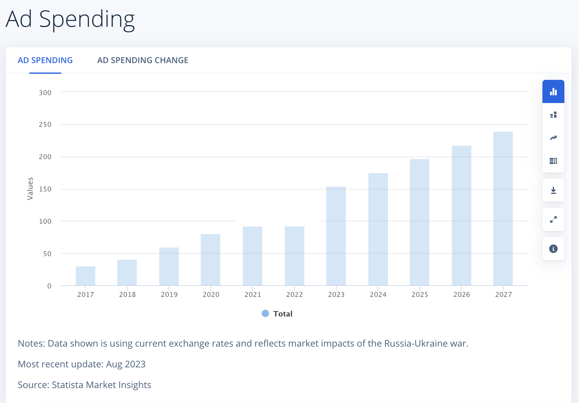 แบรนด์ต่างๆ คาดว่าจะใช้จ่าย 30.81 พันล้านดอลลาร์ในการโฆษณาการตลาดแบบอินฟลูเอนเซอร์ตลอดปี 2566 การใช้จ่ายนี้คาดว่าจะเพิ่มขึ้นเป็น 47.80 พันล้านดอลลาร์ภายในปี 2570