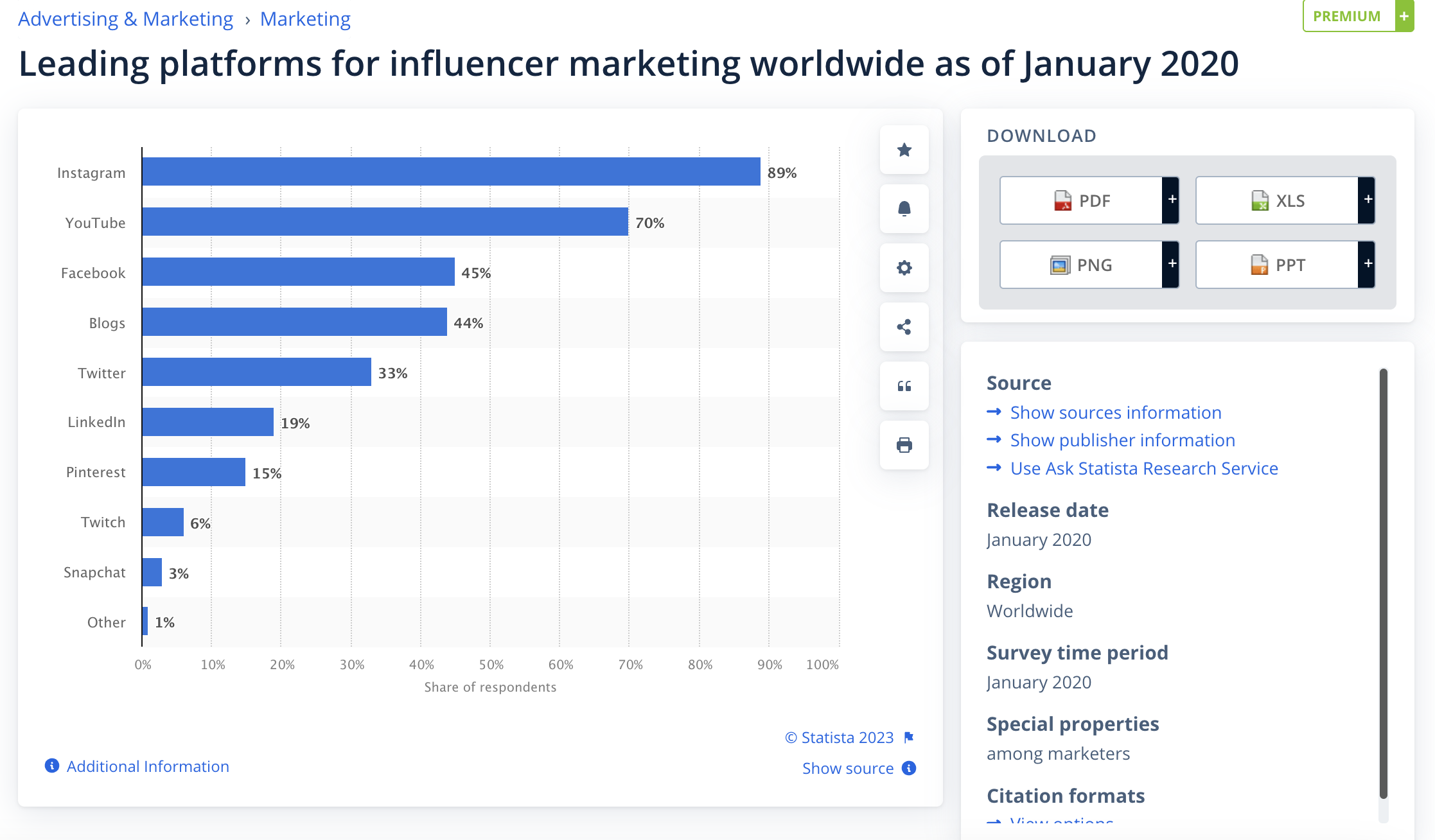 89% ของนักการตลาดยอมรับว่า Instagram เป็นแพลตฟอร์มการตลาดที่มีอิทธิพลอันดับหนึ่ง YouTube มาเป็นอันดับสองที่ 70% และ Facebook เป็นอันดับสามที่ 45% สิ่งที่น่าสนใจคือ TikTok ถูกแยกออกจากการสำรวจนี้ แม้ว่าเราจะรู้ว่าการตลาดโดยใช้อินฟลูเอนเซอร์ของ TikTok ก็เป็นเรื่องใหญ่เช่นกัน
