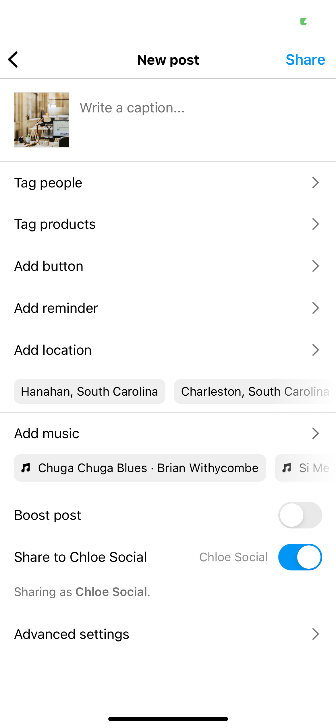 หากต้องการแชร์โพสต์ ตรวจสอบให้แน่ใจว่าคุณได้เชื่อมต่อบัญชีธุรกิจ Facebook และ Instagram ของคุณแล้ว จากนั้น คุณจะสามารถสลับตัวเลือกเพื่อแชร์ไปที่เพจ Facebook ของคุณเป็นเปิดหรือปิดทุกครั้งที่คุณโพสต์ภาพหรือวิดีโอ Instagram ใหม่