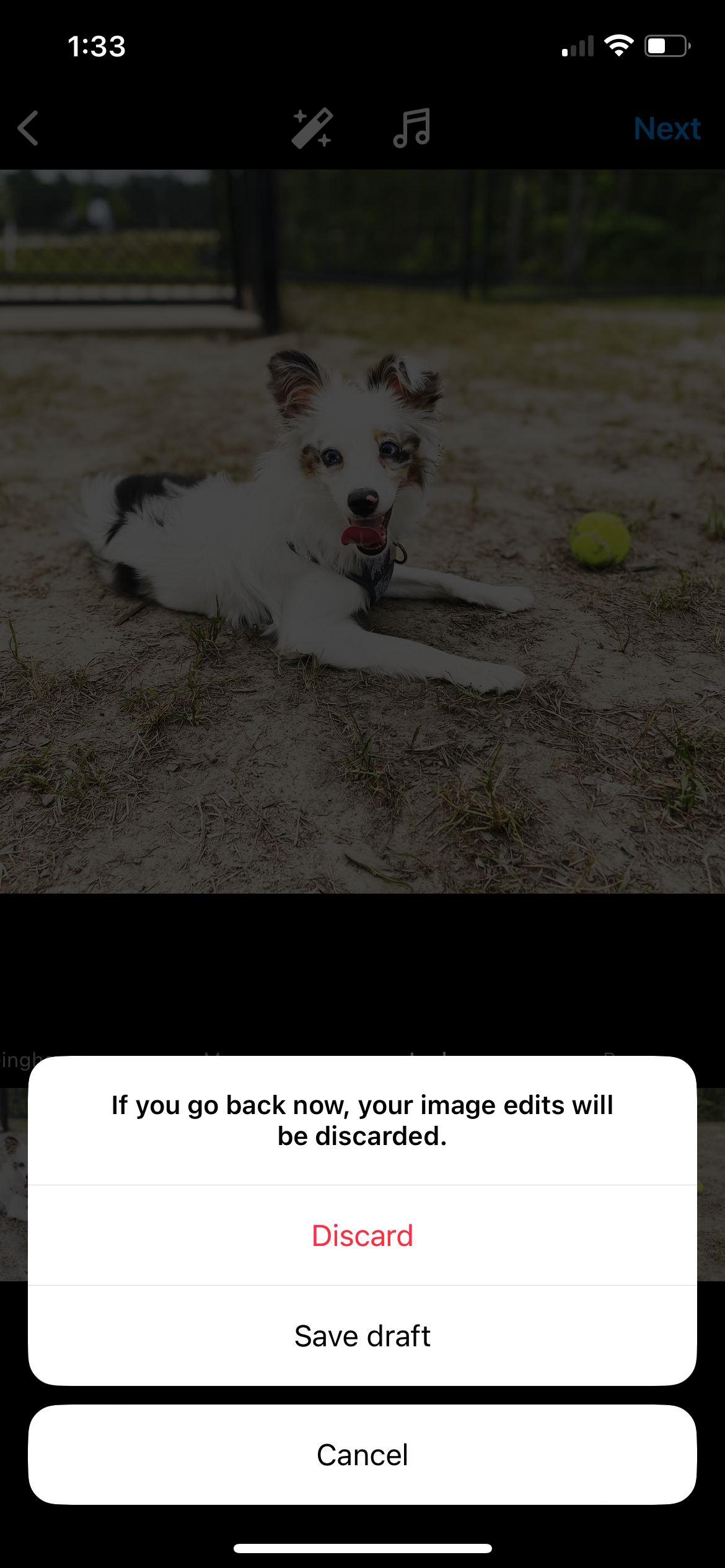 แอพจะแจ้งเตือนคุณและถามว่าคุณต้องการทิ้งโพสต์หรือบันทึกเป็นฉบับร่างหรือไม่ เลือก บันทึกแบบร่าง เพื่อออกจากแอปโดยไม่สูญเสียการแก้ไขของคุณ