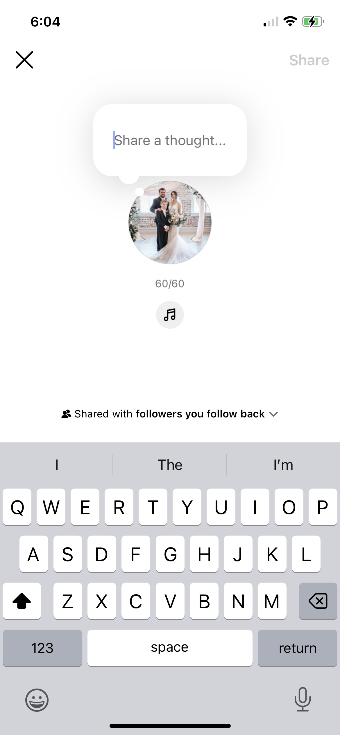 แตะเครื่องหมายบวกแล้วเลือกรูปภาพที่คุณต้องการใช้งาน เพิ่มฟิลเตอร์หรือเริ่มเขียนคำบรรยาย แล้วแตะปุ่มย้อนกลับสองสามครั้ง
