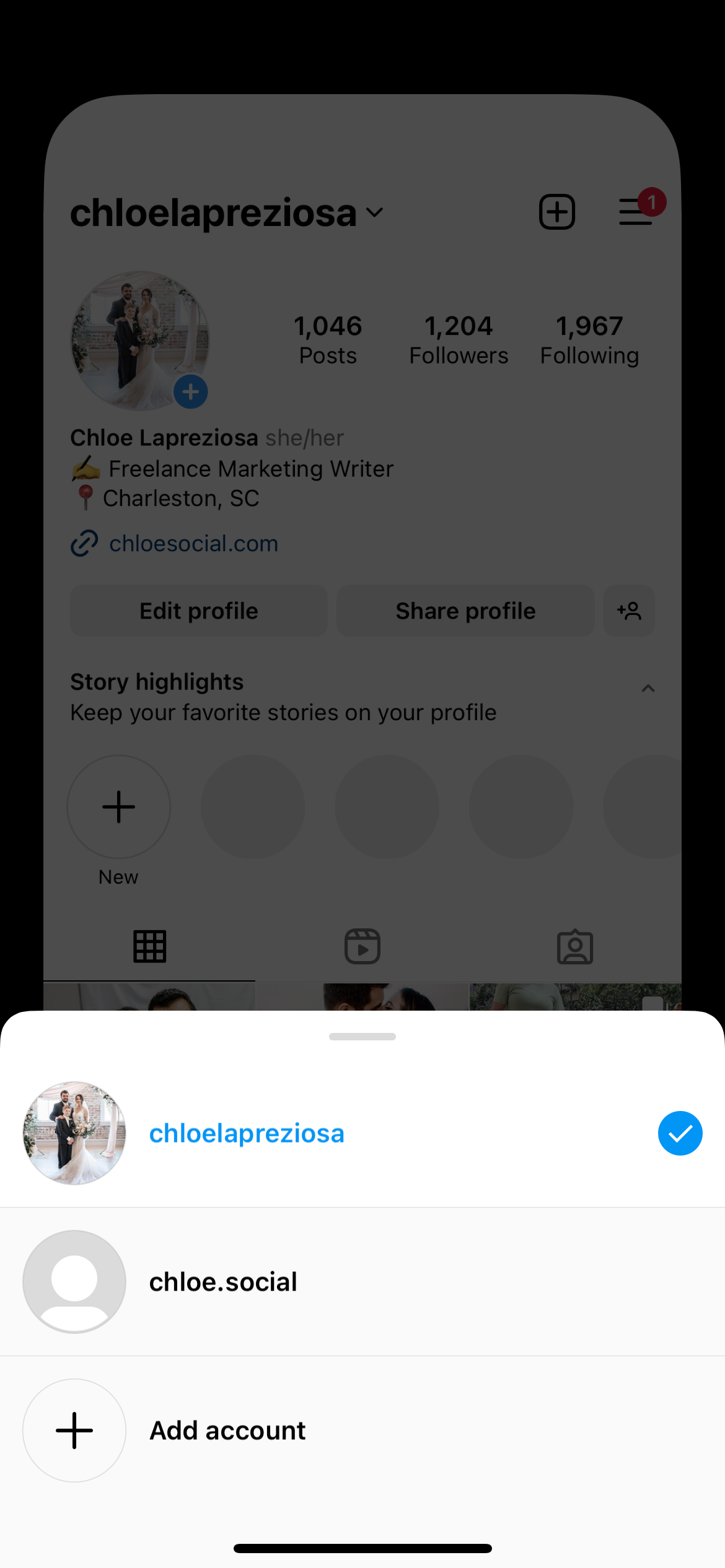 จากนั้นคุณสามารถนำทางระหว่างโปรไฟล์ต่างๆ ได้ด้วยวิธีใดวิธีหนึ่งจากสองวิธี ขั้นแรก คุณสามารถไปที่โปรไฟล์ของคุณแล้วแตะเมนูแบบเลื่อนลงข้างชื่อผู้ใช้ของคุณ อย่างที่สอง คุณสามารถเปลี่ยนไปใช้โปรไฟล์อื่นได้โดยกดแท็บโปรไฟล์ที่มุมล่างขวาค้างไว้จนกว่าตัวเลือกบัญชีแต่ละรายการจะปรากฏขึ้น