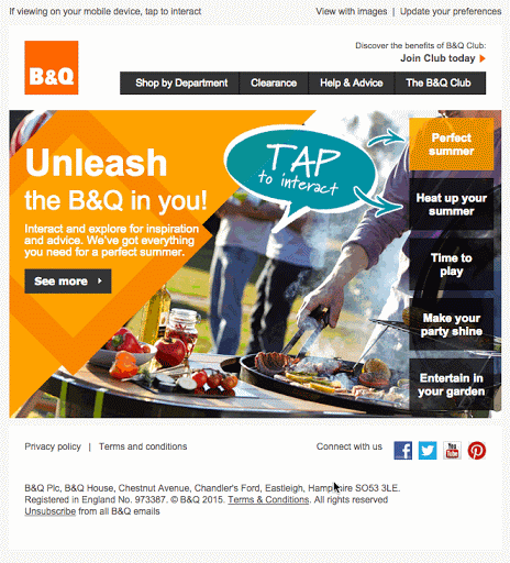 สุดท้าย อย่าเบียดเบียนอีเมลที่มีองค์ประกอบแบบอินเทอร์แอกทีฟหลายอย่าง เพราะจะทำให้สมาชิกของคุณสับสนและแทนที่เนื้อหาของคุณ ให้เน้นที่องค์ประกอบเชิงโต้ตอบเพียงองค์ประกอบเดียวหรือสองอย่างรวมกัน