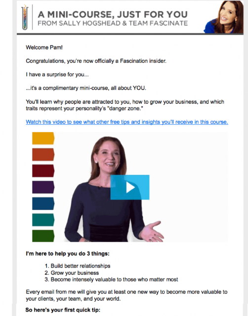 วิดีโอเหล่านี้อาจเป็นข้อมูล ให้ความรู้ หรือเป็นบทสรุปของสิ่งที่ส่งมาในอีเมล เนื่องจากผู้ชม จะเก็บข้อความไว้ 95% เมื่อดูในวิดีโอ เทียบกับ 10% เมื่ออ่านเป็นข้อความ