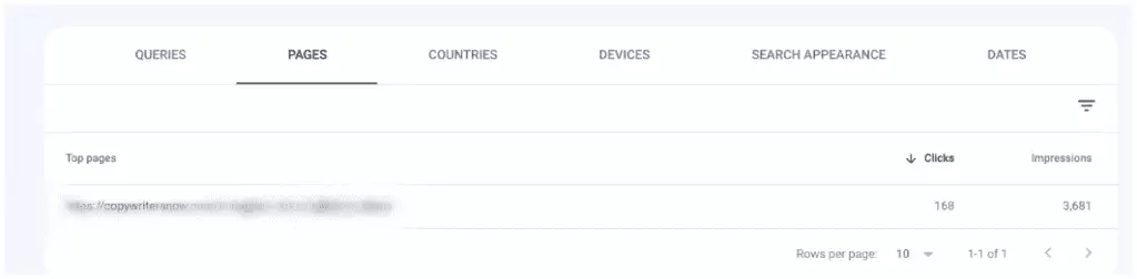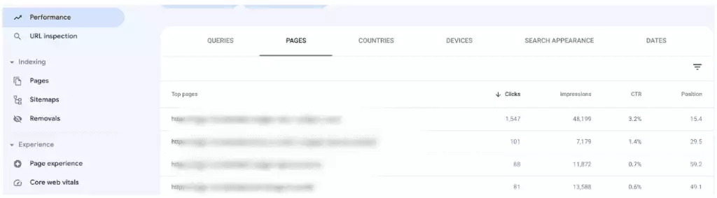 การทำเช่นนี้จะทำให้หน้ายอดนิยมและประสิทธิภาพทั่วไปปรากฏขึ้น จากนั้น คุณสามารถเปรียบเทียบเมตริกของทั้งสองหน้า เช่น จำนวนคลิกทั้งหมด การแสดงผลทั้งหมด CTR เฉลี่ย และอันดับเฉลี่ย