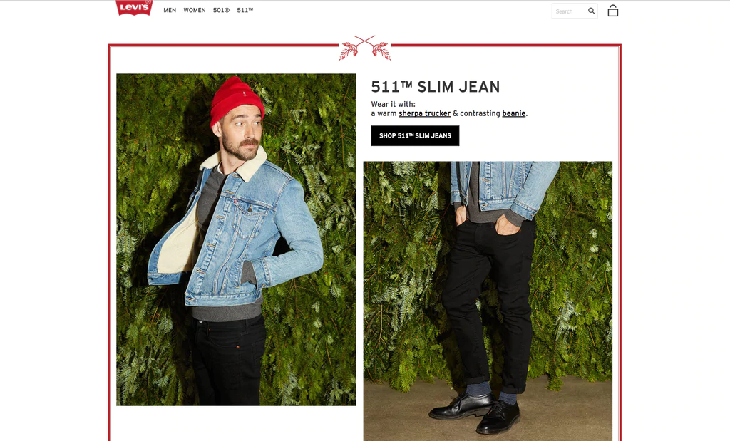 คุณคงคุ้นเคยกับวิธีที่แบรนด์ใหญ่ๆ อย่าง Gap และ Levi's ใช้ภาพบรรณาธิการเพื่อแสดงผลิตภัณฑ์ของตน ในกรณีส่วนใหญ่ รูปภาพเหล่านี้มีผลิตภัณฑ์อื่นๆ ด้วย คุณสามารถดูได้ว่าลีวายส์ใส่หมวกบีนนี่และแจ็กเก็ตยีนส์ควบคู่ไปกับ 511 รุ่นคลาสสิกได้อย่างไร แสงและการตั้งค่าคอนทราสต์สูง "แสงน้อย" และการตั้งค่าของภาพถ่ายเหล่านี้ช่วยเพิ่มปัจจัยที่เจ๋งให้กับผลิตภัณฑ์ที่บรรยาย