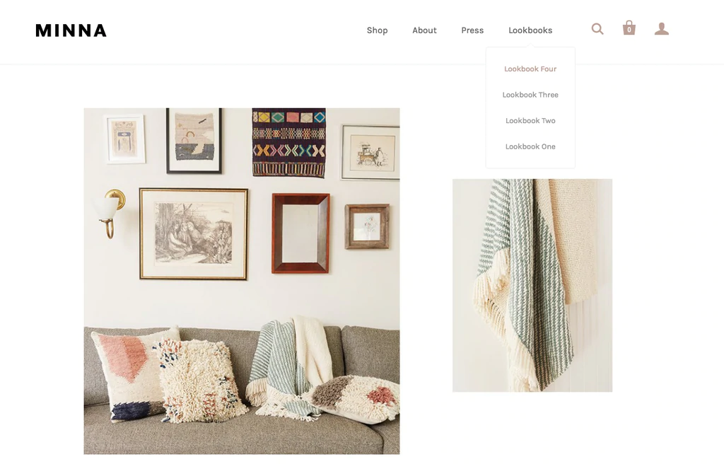 Minna Goods ที่เรากล่าวถึงก่อนหน้านี้ใช้แนวทางที่คล้ายกันโดยใช้ธีมเริ่มต้น Minna Goods เป็นตัวอย่างที่ยอดเยี่ยมของแบรนด์ที่อัปเดตร้านค้าออนไลน์เป็นประจำ โดยสร้างลุคบุ๊กใหม่เพื่อแสดงวิวัฒนาการตามฤดูกาลของแบรนด์ พวกเขาใช้ความคิดอย่างมากในการออกแบบผลิตภัณฑ์ของใช้ในบ้านที่สวยงาม ซึ่งส่องผ่านหนังสือออนไลน์ที่ได้รับการดูแลจัดการอย่างดี
