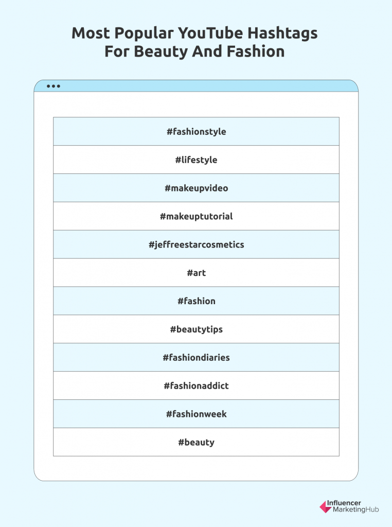 เช่นเดียวกับ Instagram YouTube เป็นแหล่งเนื้อหาด้านความงามและแฟชั่นขนาดใหญ่ ไม่ว่าคุณจะเป็นคู่มือแนะนำวิธีใช้ บทช่วยสอน หรือแม้แต่การช็อปปิ้งหรือช็อปปิ้ง นี่คือแฮชแท็กยอดนิยมบางส่วนที่คุณสามารถใช้ได้: