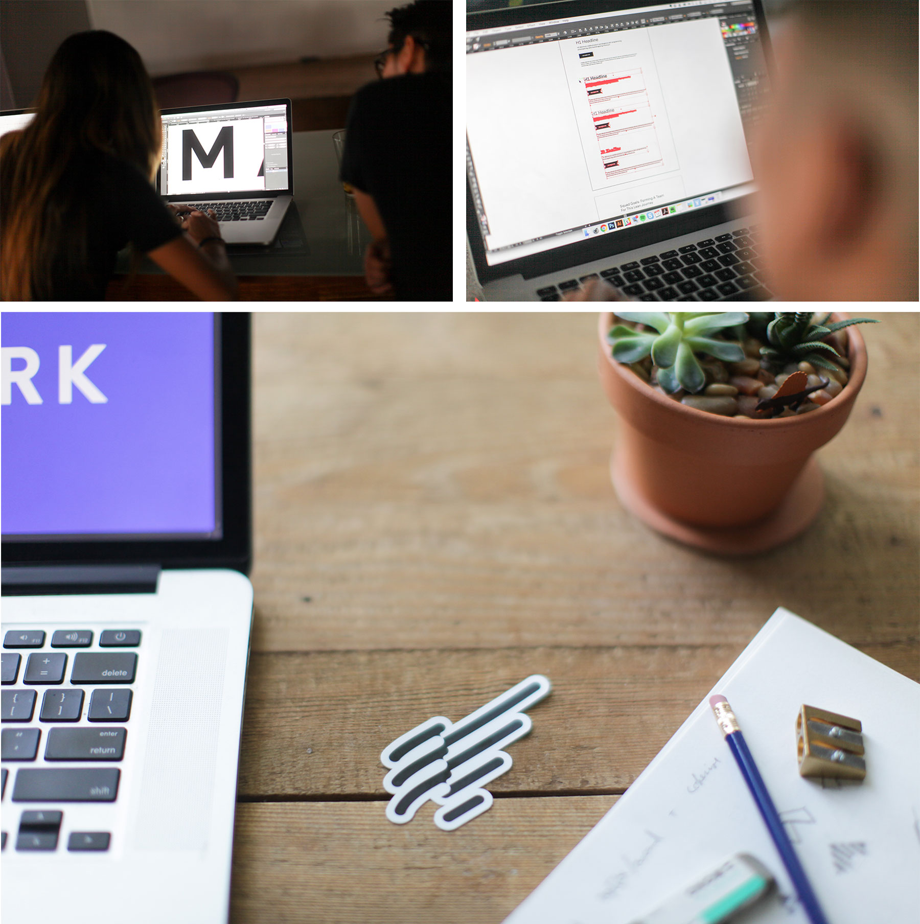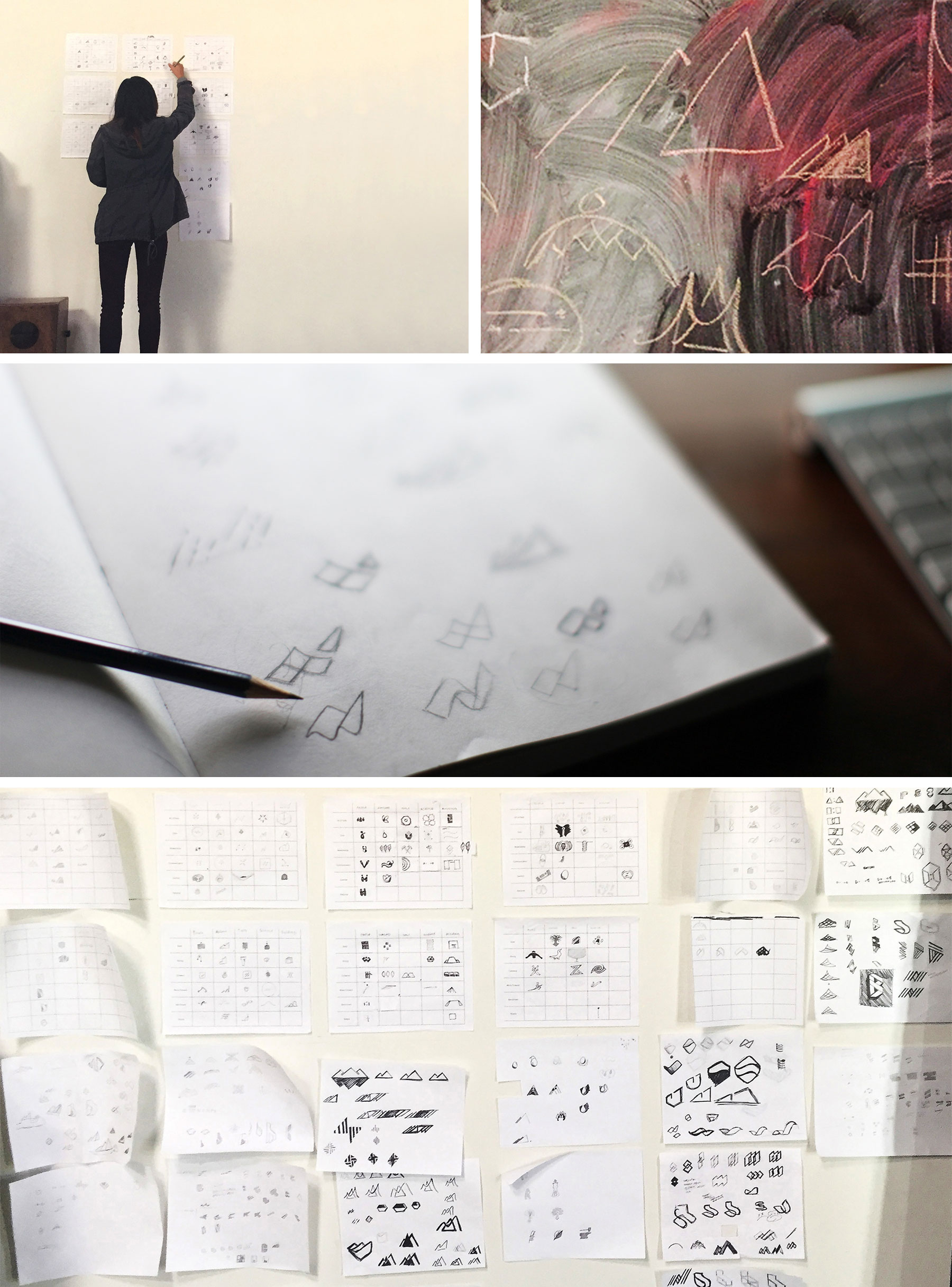 ยังมีงานอีกมากที่ต้องทำแม้หลังจากเลือกทิศทางสุดท้ายแล้ว เรายังคงร่างรูปแบบเครื่องหมายโลโก้โดยทำแบบฝึกหัดทั้งบนกระดาษและใน Adobe Illustrator